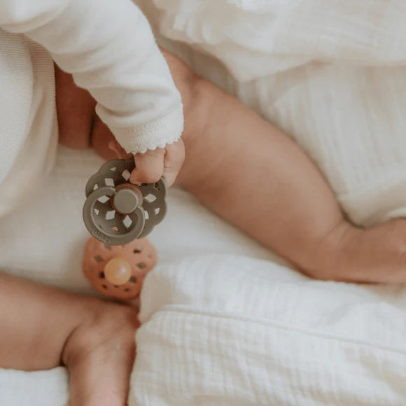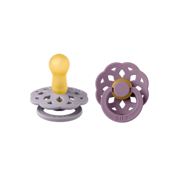 Elevate your baby's comfort with the BIBS Boheme pacifiers in Fossil Grey and Mauve. Crafted with a natural rubber latex nipple, these pacifiers offer a skin-like softness and resilient suction that mirrors breastfeeding for a natural latch. The gentle shield minimizes skin irritation and moisture buildup, ensuring all-day comfort. Made from BPA-free, food-grade materials and designed in Denmark, these pacifiers provide a safe and seamless transition between breastfeeding, bottle-feeding, and pacifier use. Comes in a convenient 2-pack to keep your baby soothed anywhere.