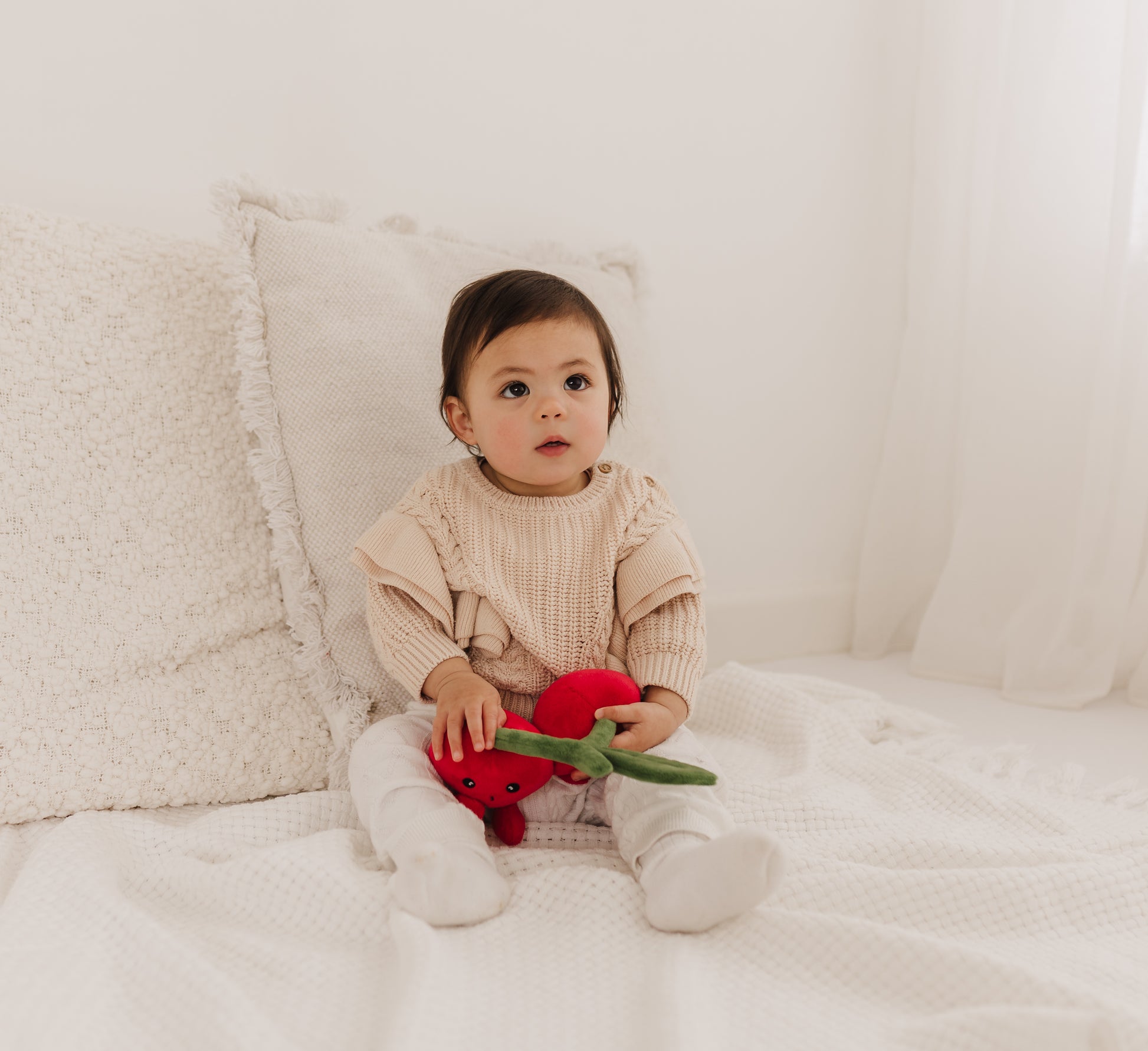Like a pair of cherries joined by a stem, these Perfect Pairs plush toys feature built-in magnets that keep them connected while allowing easy separation and reconnection. Perfect for celebrating close friendships, this charming gift suits birthdays, Valentine’s Day, anniversaries, or simply to show your best friend the strength of your bond. Crafted from soft, plush fabric with weighted bodies, these two cherries remain linked, symbolizing your enduring connection. Part of Bubble’s Perfect Pairs Collection, this set measures 17 x 6.5 x 21 cm and is suitable from birth onwards.