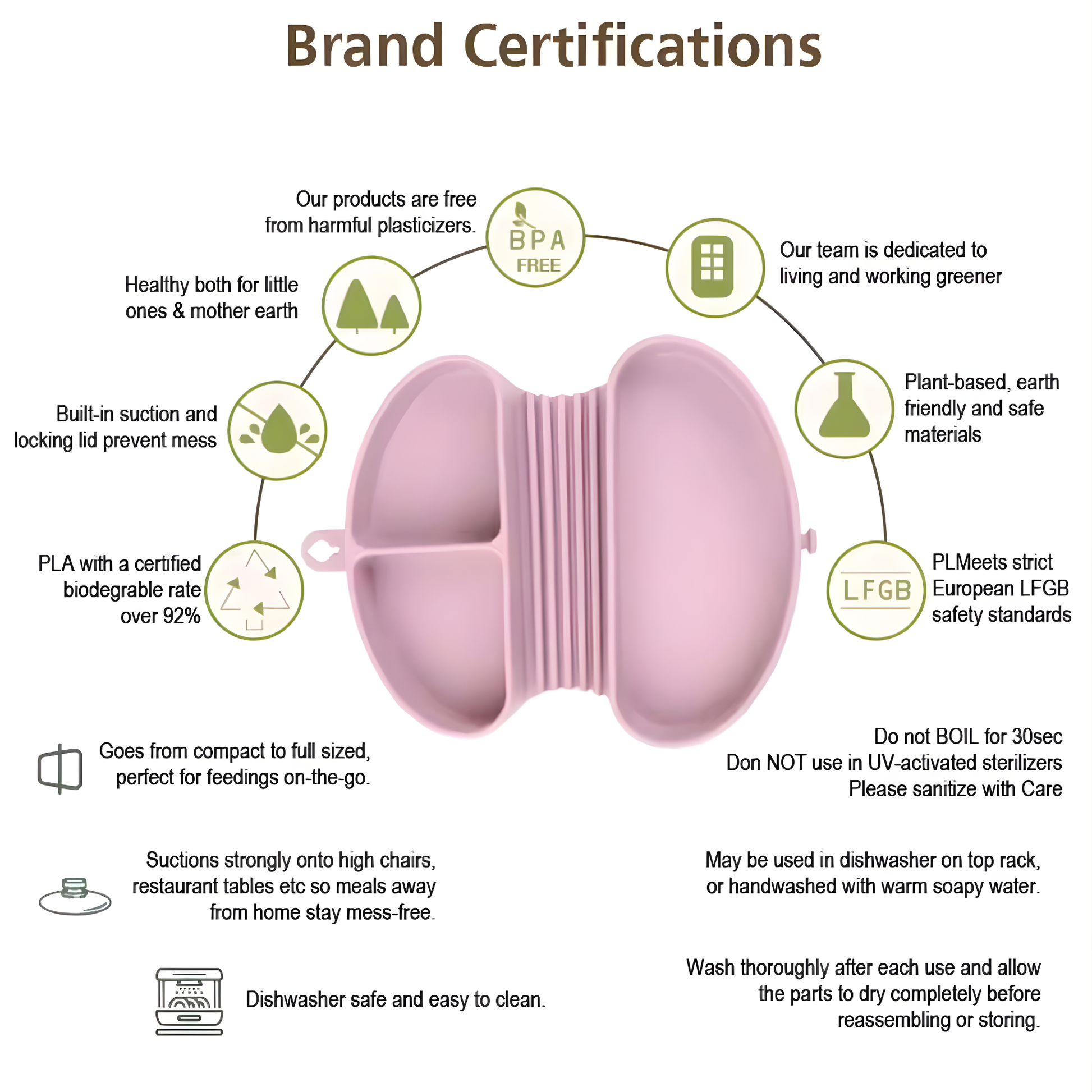 This smart, compact foldable design expands into a full-size meal box, making it easy to separate snacks, meals, and finger foods. When finished, it folds flat and secures neatly with the built-in clasp — ideal for travel, outings, restaurants, daycare, or picnics.