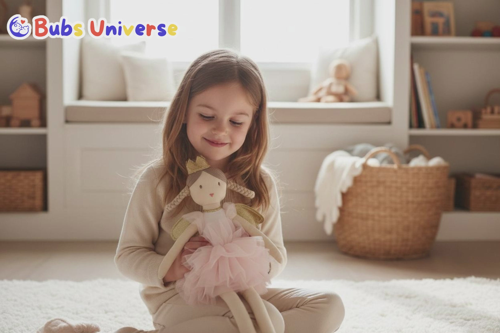 Aria the Blush Angel is a 50cm handmade doll dressed in soft pink tulle tutu with Golden Wings, sparkling shoes and a tiny crown. Gentle, elegant and beautifully crafted, she makes the perfect gift for birthday, baby showers and dreamy nursery decor.