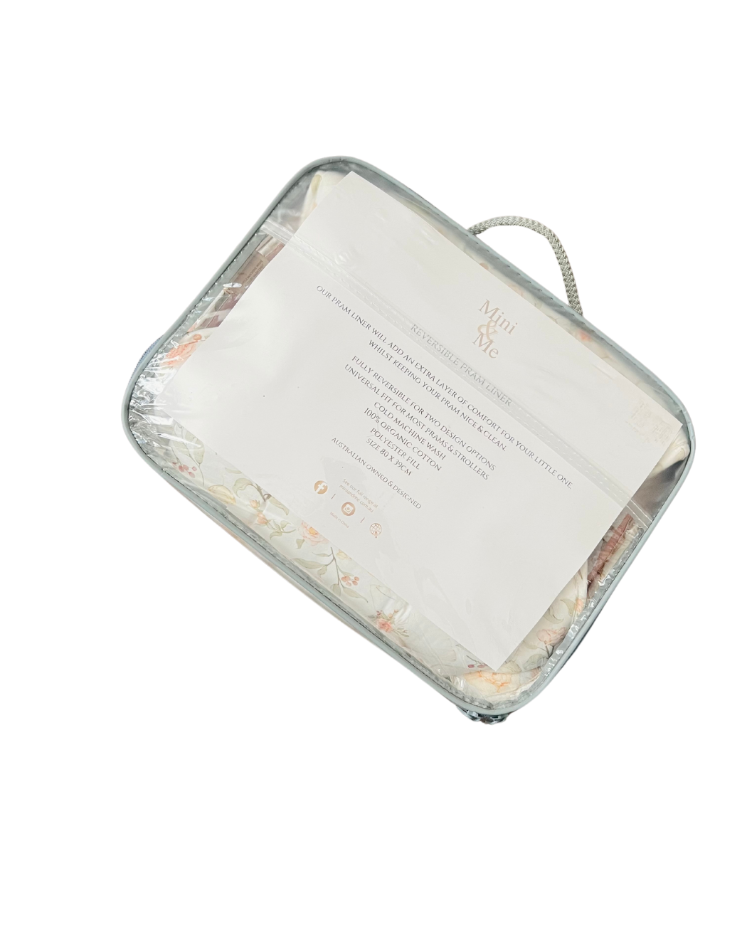 The Mini & Me Universal Pram Liner Amelia provides an ideal balance of comfort and protection for your child’s pram. Crafted from 100% organic cotton with a polyester fill, it offers a soft, breathable surface that keeps your pram clean without adding bulk. Its fully reversible design gives you two style options, while the universal fit suits most prams and strollers. Easy to maintain, it is machine washable on a cold, gentle cycle. Measuring 80 x 39 cm, this liner ensures a cozy and hygienic ride for your little one.