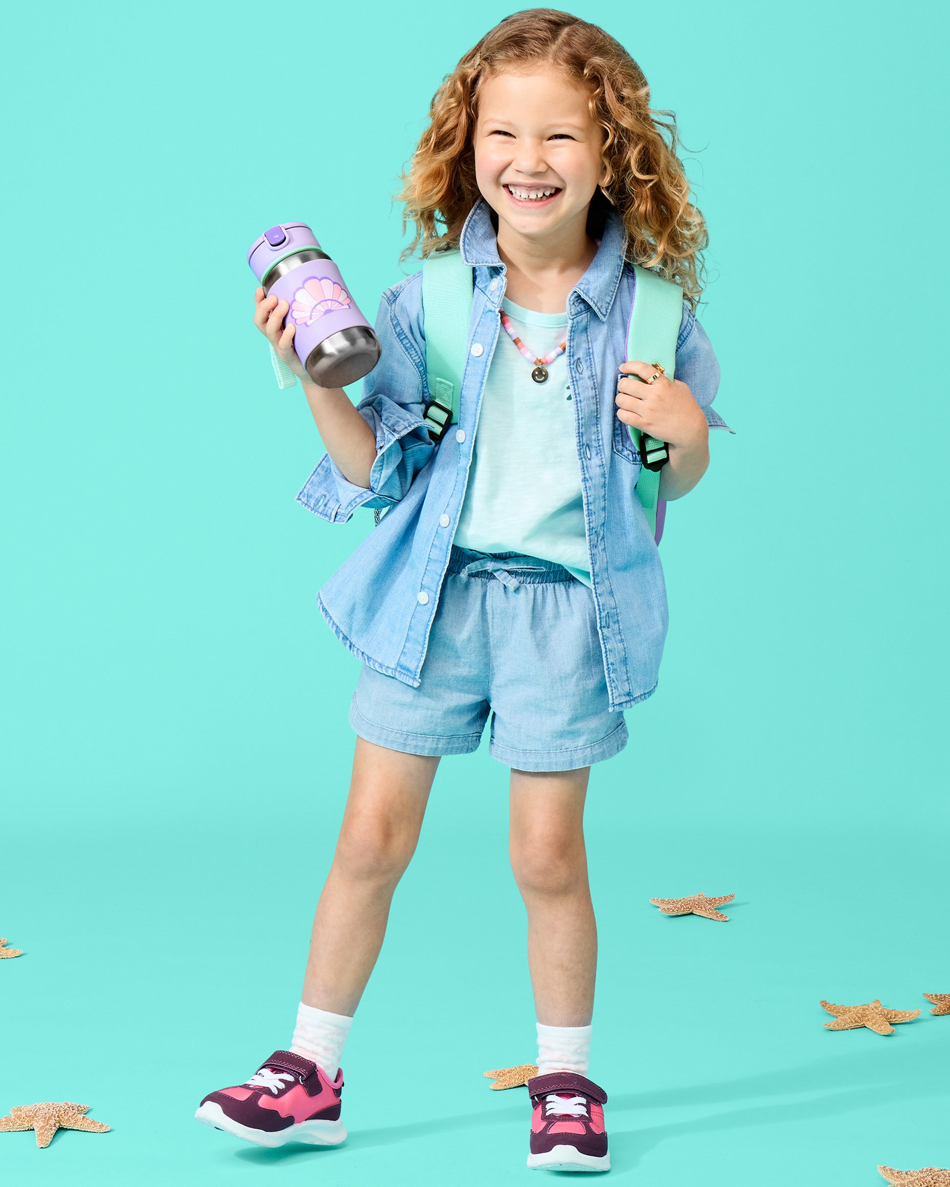 SKIP HOP SPARK STYLE STAINLESS STEEL STRAW BOTTLE - SEASHELL
