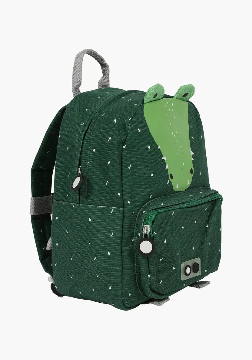 Prepare your child for every adventure with the Trixie Backpack Mr Crocodile. Designed for comfort and practicality, it features adjustable padded shoulder straps, a chest strap to keep them secure, and a top handle for easy carrying or hanging. The backpack includes a spacious main compartment and a front pocket with zippers that children can easily operate themselves. A name tag inside helps prevent loss, while the water-repellent fabric protects belongings from the elements. Crafted from durable cotton with a polyester-cotton lining, it measures 31 x 23 cm—ideal for school or outings.